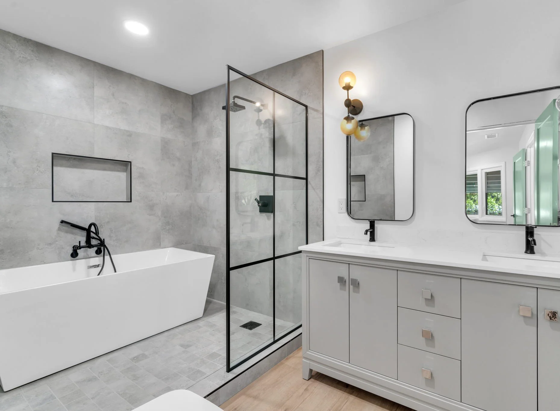 Bathroom remodeling offers an incredible opportunity to enhance one of the most utilized spaces in your home. From luxurious or intricate tile patterns to elegant fixtures and custom vanities, we offer a wide range of choices to create a bathroom that reflects your style and brings greater functionality to the space. Whether you’re looking to remodel an existing bathroom or build a new one, our expert designers and certified craftsmen will work with you to bring your vision to life.
